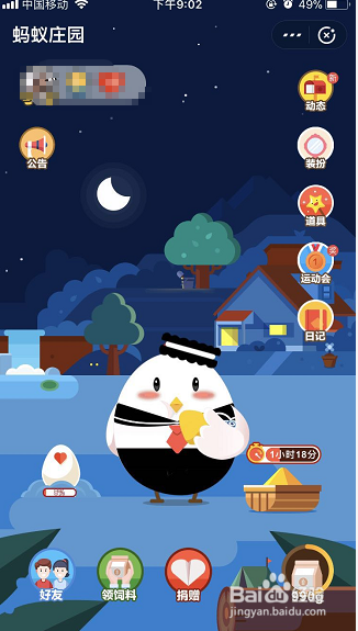进入蚂蚁庄园之后,会显示庄园内的小鸡的状况。