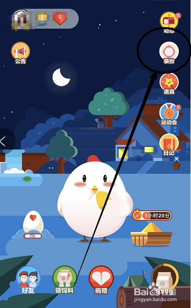 点击蚂蚁庄园页面右侧的装扮按钮,具体位置如下图所示、