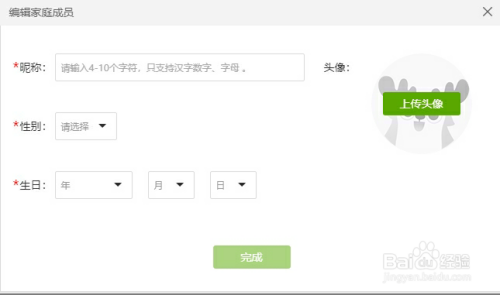 下面点击“添加家庭当作员”,输入昵称、性别、生日等信息如下图所示。