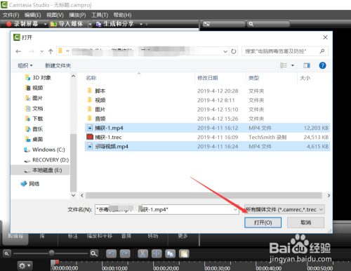 camtasiastudio软件后,直接点击导航栏里的【导入媒体】,如下图所示。