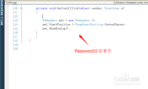 编写登录页面上点窜密码按钮的点击事务,当用户点击点窜密码的控件时,跳出点窜密码的界面。代码: