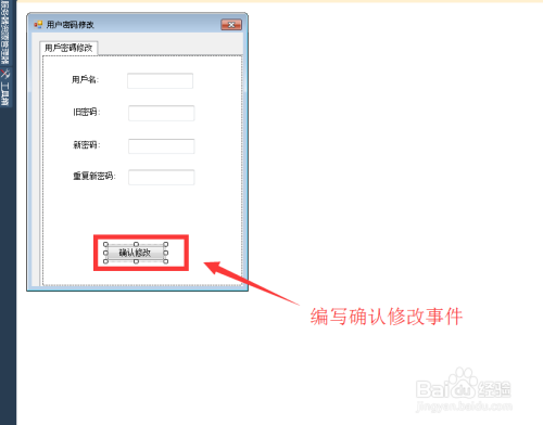 编写点窜密码页面代码,这里本家儿如果经由过程确认点窜这个button控件来实现。代码如下: