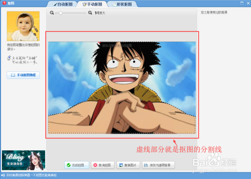进入页面,用鼠标接近照片,就会酿成钢笔东西,再点击到照片,按照本身的需求,把需要留下的部门进行抠图。