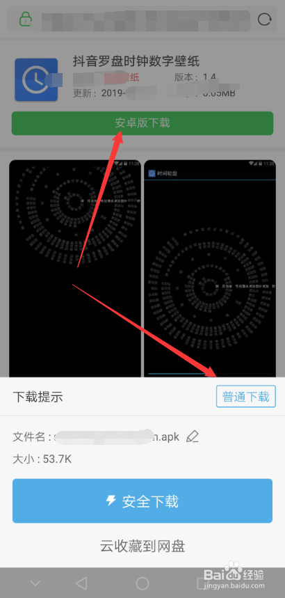 本身打开手机浏览器进行搜刮找到抖音罗盘时钟的下载链接,然后直接点击下载,如下图所示。