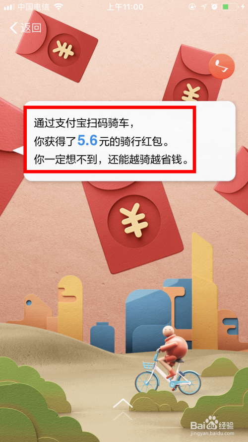 共获得5.6元的骑行红包。