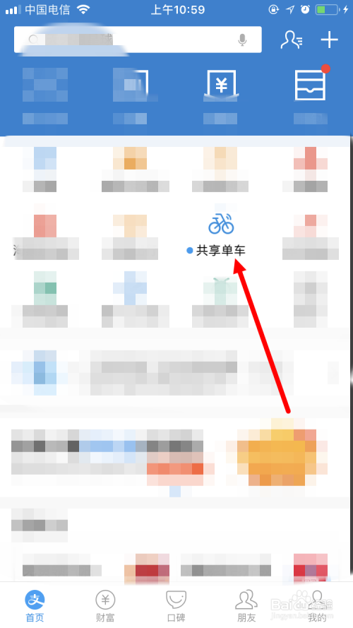 首先在手机上打开并登录支付宝App,并在首页面点击 共享单车 。