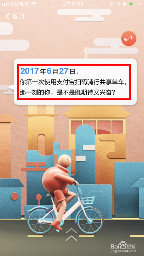2017年6月27日,小编第一次用支付宝扫码骑行共享单车。
