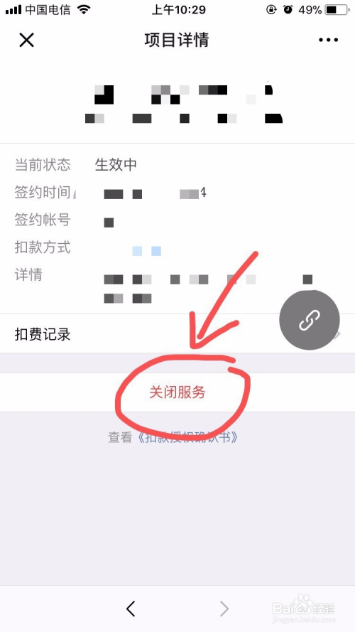然后找到本身之前签约的项目点击进入封闭办事或者是打消主动扣费就可以了。