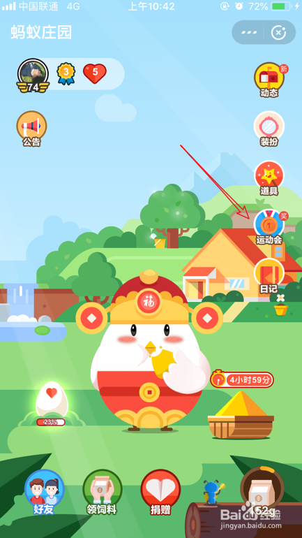 打开蚂蚁庄园后,可以看到页面右侧的活动会,我们点击它