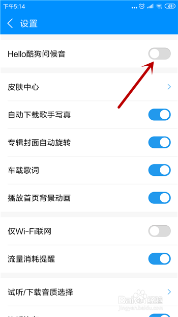 然后在设置中我们就能看到【Hello酷狗问候音】,我们需要先开启。
