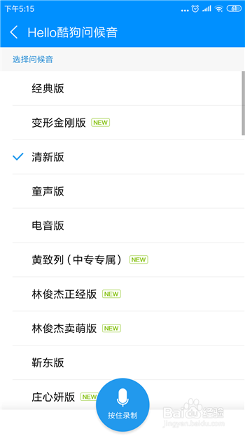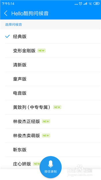 开启后下方会呈现【选择问候音】,默认的是经典版,点击该选项。