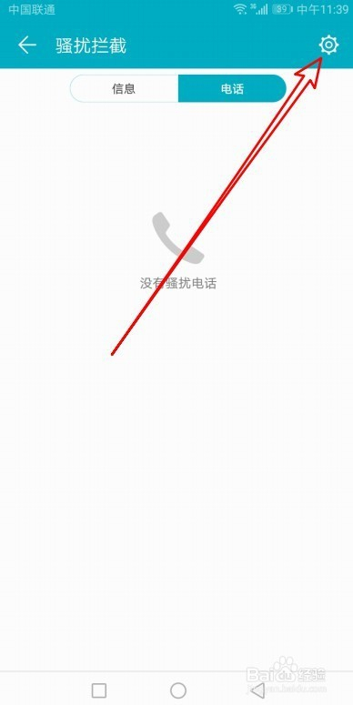 这时就会打开华为手机的骚扰阻挡的页面,在页面中我们点击“设置”按钮。
