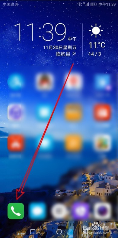 在手机上摆布滑动屏幕,在屏幕上找到华为手机的拨号图标。
