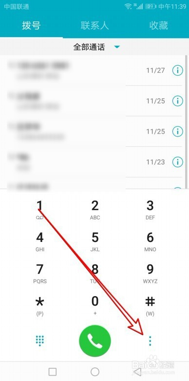 在打开的华为手机拨号本家儿界面,我们点击右下角的“更多”按钮。
