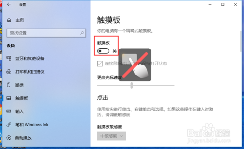 点击开关按钮,可以封闭触摸板。封闭后,就不克不及用触摸板取代鼠标进行操作了。