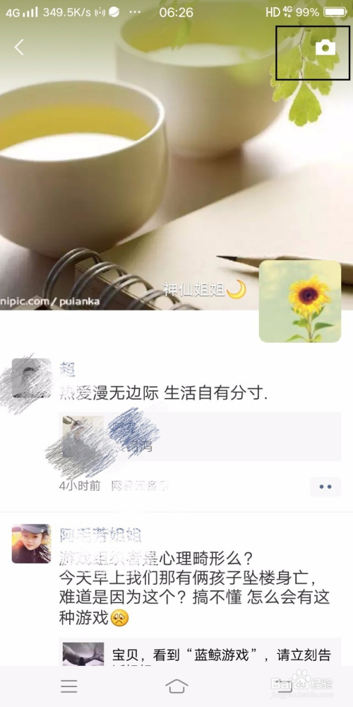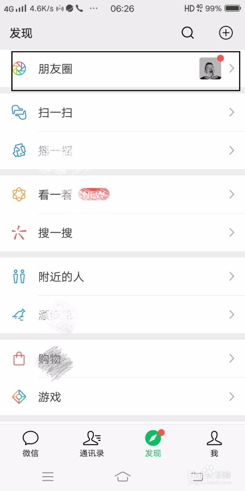 如图,找到并点击上方的朋友圈。
