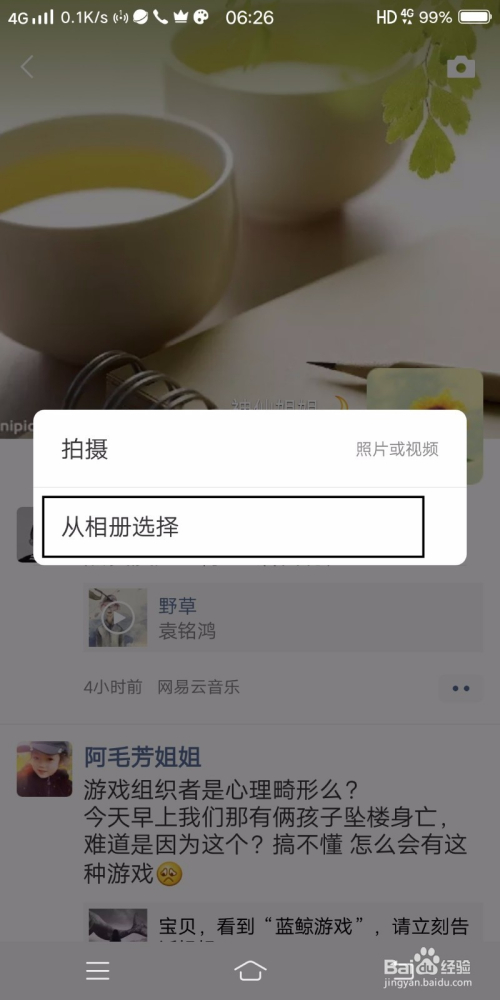 如图,找到本页面上的从相册选择并点开。