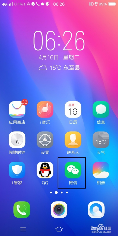 如图,首先打开手机找到微信并点开。