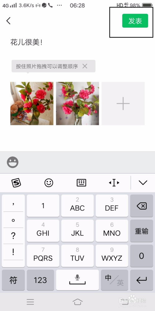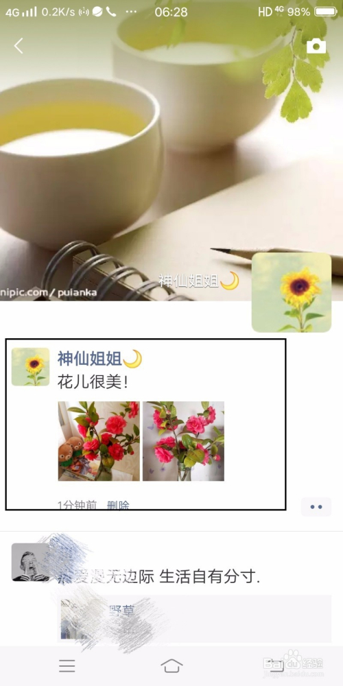 如图,文字和图片已经发到本身的朋友圈了,微信老友也可以看到哦。