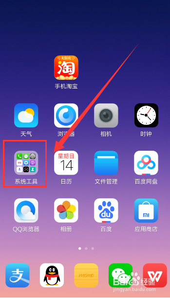在手机桌面找到系统东西夹,如图所示