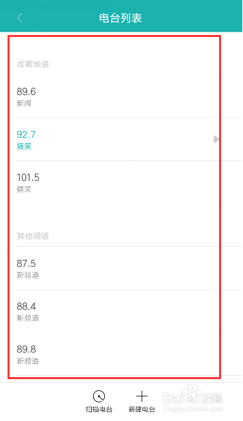 然后,点击上面的电源按钮,这时,就可以搜刮到电台了,如图所示