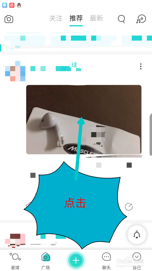 在打开的广场上面,找到一个带有图片的动态,点击上面的图片。如图所示