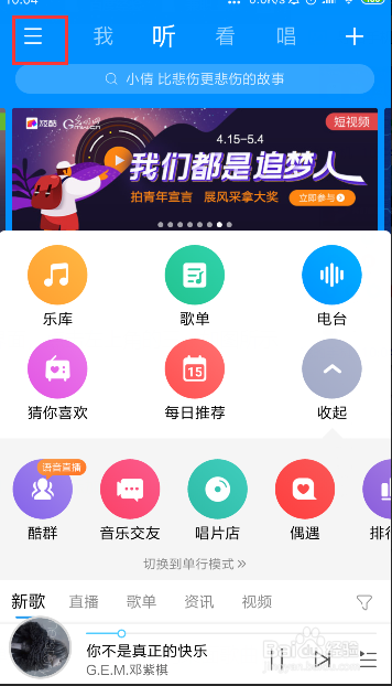 然后,回到本家儿界面,点击左上角的三,如图所示