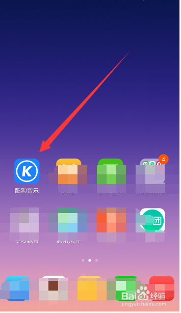 在手机桌面,点击我们喜好的酷狗音乐,如图所示
