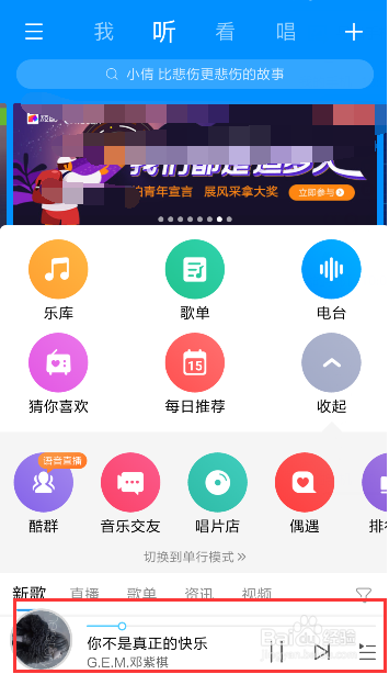 进入酷狗音乐界面,此刻你播放一首歌,如图所示
