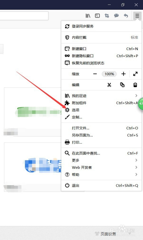此时会弹出一个下拉菜单,我们选择此中的“选项”,如图所示。