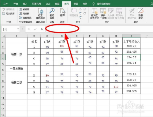 此刻仍是能看到单位格中的公式。单击“核阅”选项卡