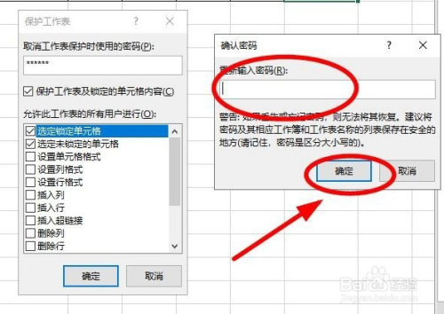 在“庇护工作表”对话框中输入“庇护密码”后单击“确定”后再输入一次密码后单击“确定”