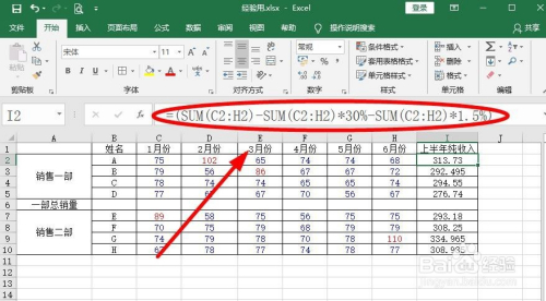 表格中I列中的公式表现的是营业额减去30%的当作本和1.5%的税收及其他之后的纯收入。为了不让看到表格的人看出当作本,需要埋没计较公式