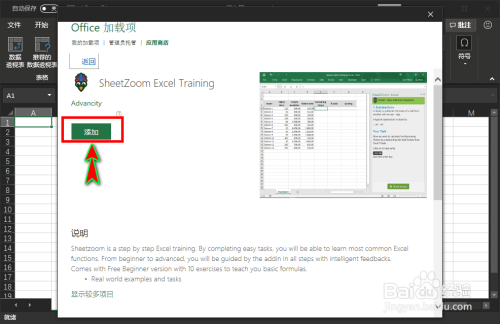 若是感觉插件刚好是本身需要的插件,就可以点击介绍页面的“添加”按钮,添加后该插件就会安装到我们的excel软件中了。