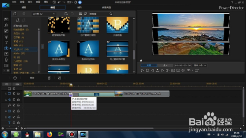 首先就是标的目的上翻转百叶窗结果转场的位置是在:转场-3D/类3D-里面可以找到