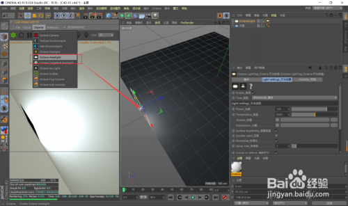 建立一个OC的灯光,在标签中调节power的数值。