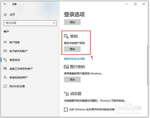 密码设置完当作后,往下滑动页面,给动态锁下方的【许可windows在你分开时主动锁定设备】打勾。