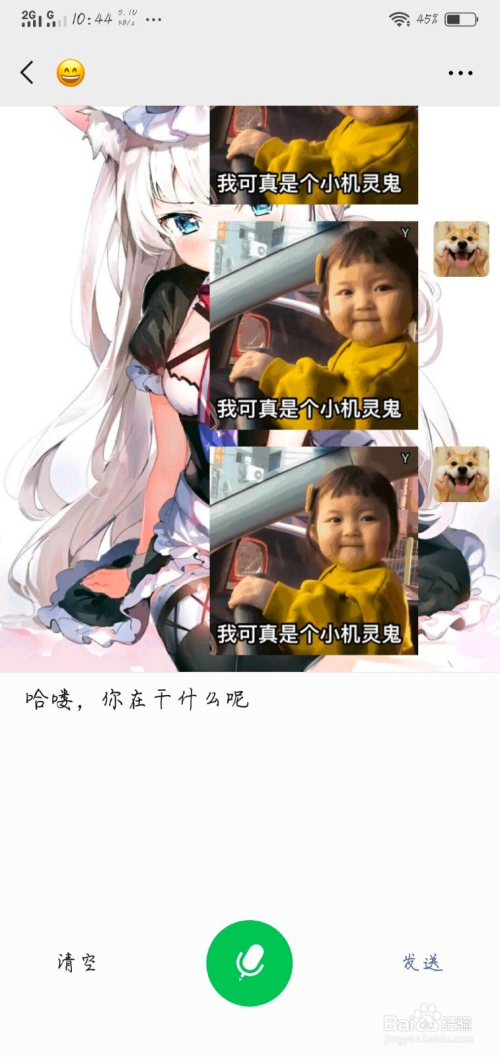 再按下面的措辞按钮,就会打出你语音相对于的字,点击发送。