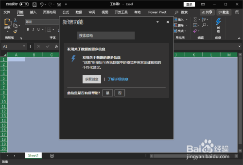 - 在一些低版本的excel软件中可能没有新增功能这一选项,需要在较新版本的excel中才能查看。
