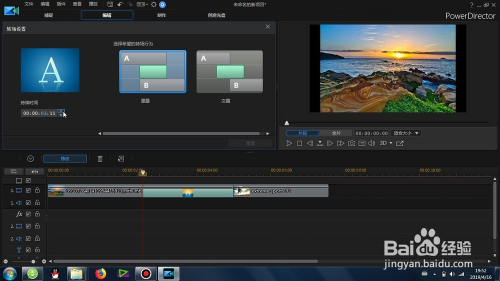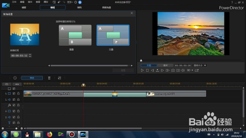 双击这个转场标识,可以打开其设置窗口,可以设置它的特效持续时候、转场的行为以及转场的偏向