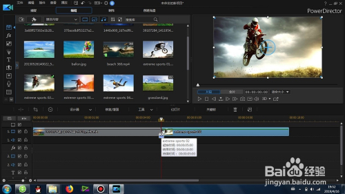 导入之后的素材,点击+号导入到威力导演的时候线视频轨道上,包管首从头至尾相连