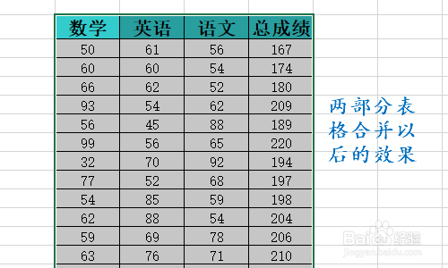 点击对话框中的“确定”,返回到表格我们就会发现这两部门表格又被完美的组合到了一路,见下图;