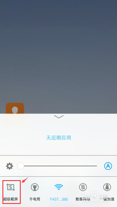 在手机桌面,用中心的按键往上滑动,呈现以下窗口,点击【超等截屏】。