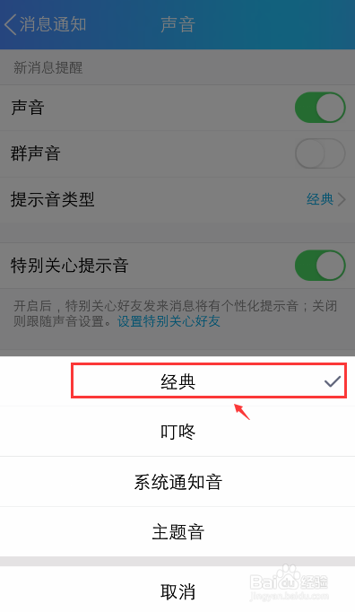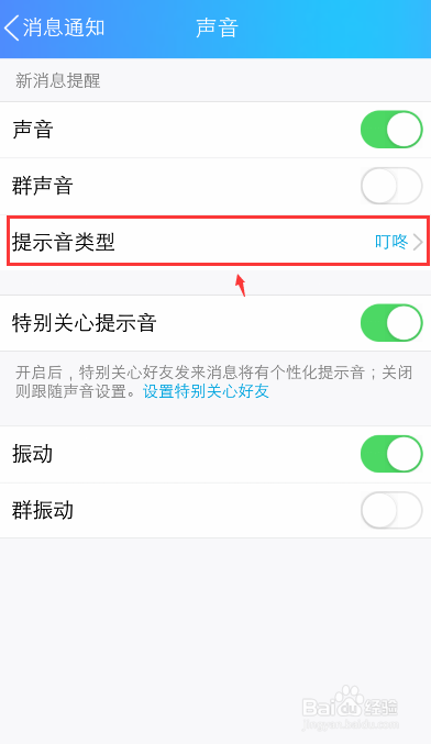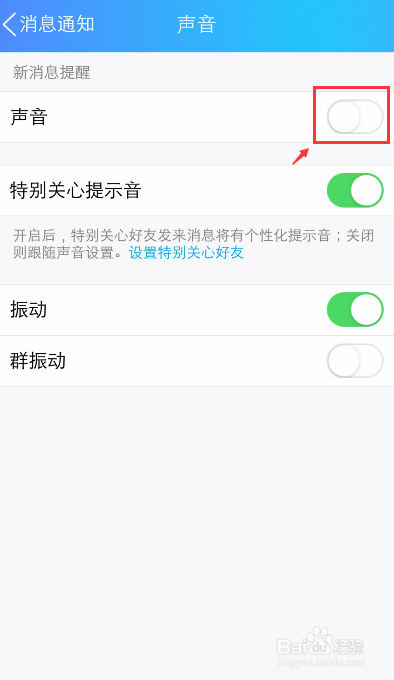 进入声音页面,在新动静提醒下方,打开【声音】。