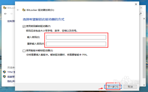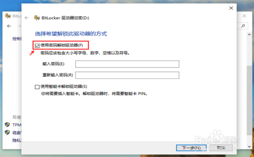 - 7启动完当作后,进入以下页面,给【利用密码解锁驱动器】前面的方框点击✔。