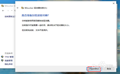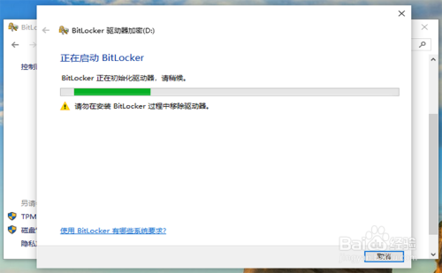 到时会呈现以下页面,会有【正在启动BitLocker】的提醒语,期待启动。