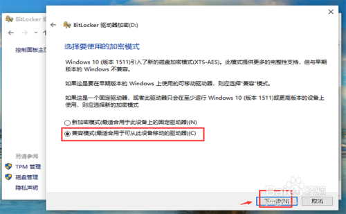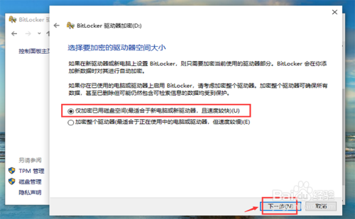 进入页面,选择【仅加密已用磁盘空间】,再点击【下一步】。