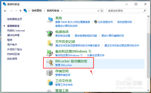 进入系统与平安页面,点击【BitLocker驱动器加密】。