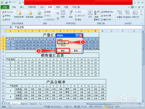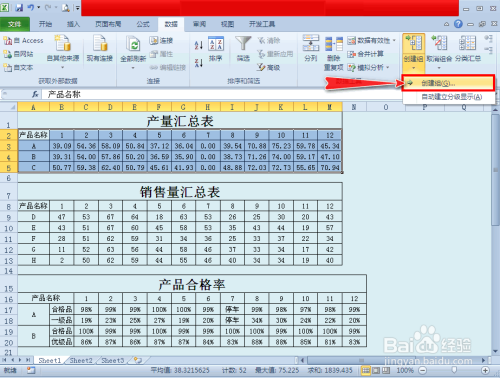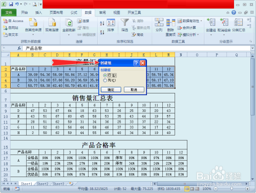 接着我们单击本家儿菜单中的“数据”选项,并在其下拉菜单“分级显示”组中点击“建立组”子项,这时会呈现扩展框项。如图所示: