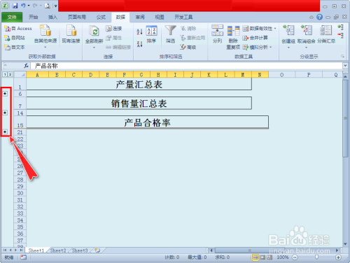 操纵不异的方式,我们将工作表内其他的表格也进行折叠,这样整个工作表看起来加倍简练。若是想查看某个表格中的数据,我们只需点击左侧带方框的十字符号。如图所示:
